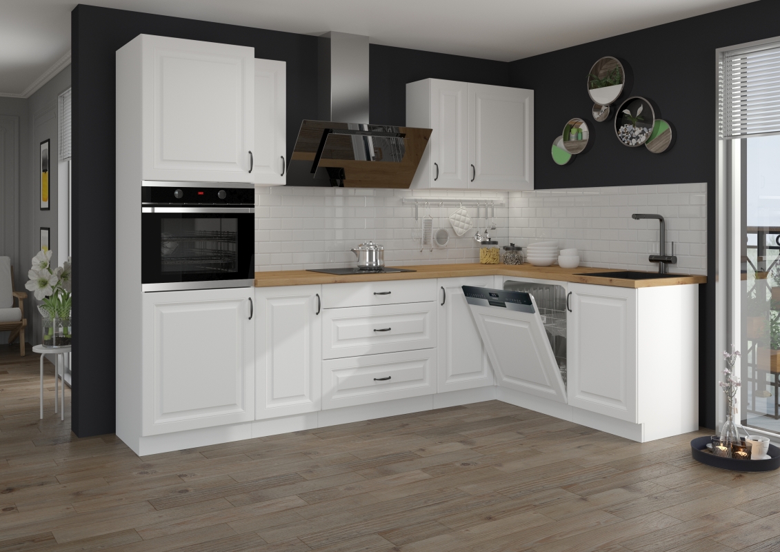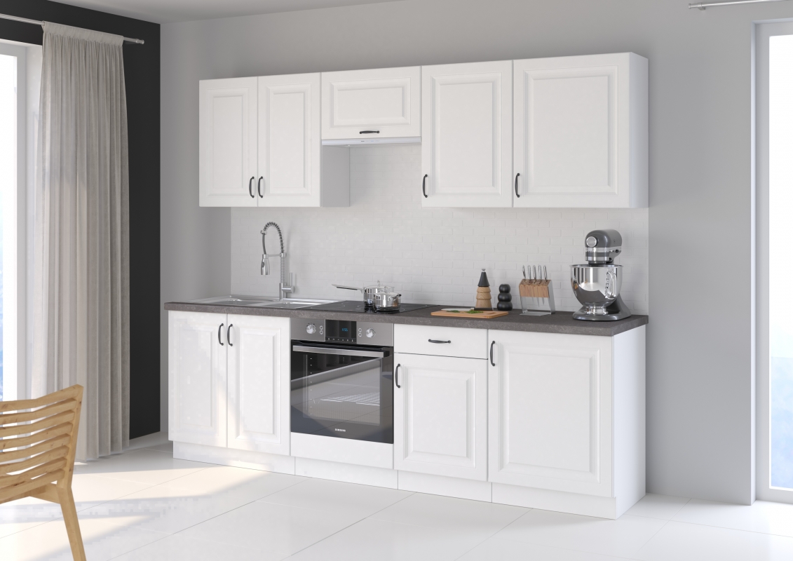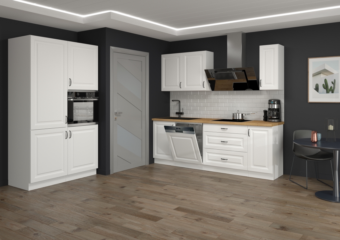 Nechte se vnést do krásného interiéru ve stylu moderní francouzské Provance. Konstrastní bílá dvířka a černé úchytky vytváří luxusní žážitek, na který se budete těšit každý den.