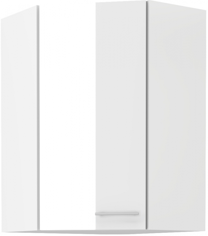 Horní rohová kuchyňská skříňka z kolekce LARA v bílém lesku. Pomocí dalších skříněk z této kolekce si můžete sestavit kuchyňskou linku podle svých představ.