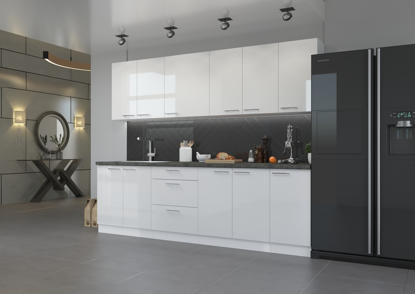Horní kuchyňská skříňka z kolekce LARA v bílém lesku. Pomocí dalších skříněk z této kolekce si můžete sestavit kuchyňskou linku podle svých představ.