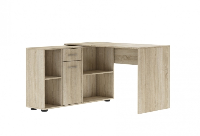 Rohový stůl Eliseo je praktické řešení do studentských pokojů, kanceláří i menších prostor. Nabízí zásuvku, skříňku a prostorné police, takže poskytuje dostatek úložného místa. Univerzální design se snadno přizpůsobí většině interiérů.