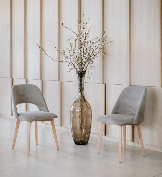 Velmi kvalitní židle vyrobená z bukového dřeva. Tvarované celočalouněné provedení zajistí pohodlné sezení.